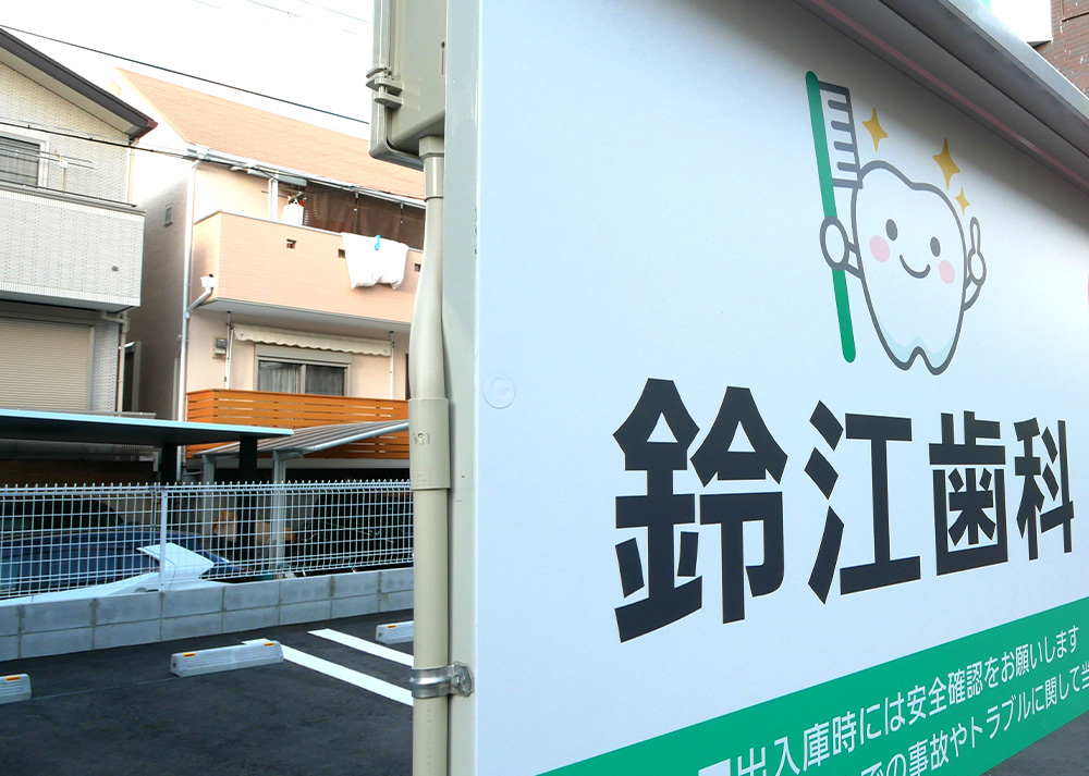北大阪急行「桃山台」駅から車で6分、阪急バス「東豊中4丁目」バス停すぐの立地です。歯科医院には駐車場を併設しており、お車でもご来院いただけます。以前は少し離れた提携パーキングをご利用いただいておりましたが、現在は医院敷地内に駐車スペースをご用意しております。お車での通院がより便利になりました。